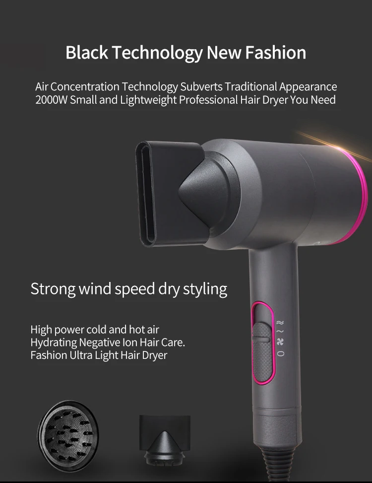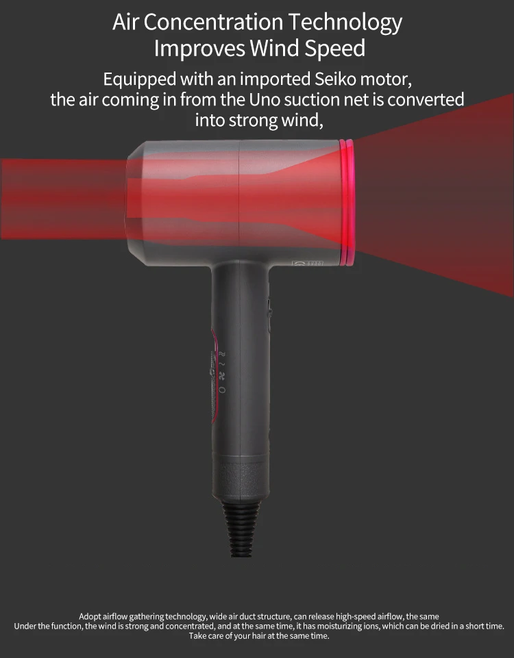Equipped with diffuser and concentrator nozzles, a lightweight ABS+metal body, and customizable colors or logos, it offers flexibility for personal or commercial use. Certified CE, ROHS, and CCC for safety and quality.